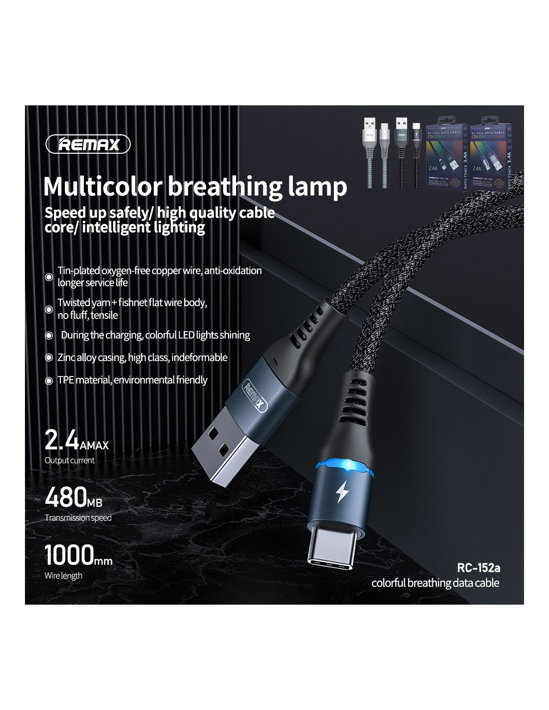 REMAX Colorful Light 2.4A Data Cable RC-152a (USB-Type C) BLACK