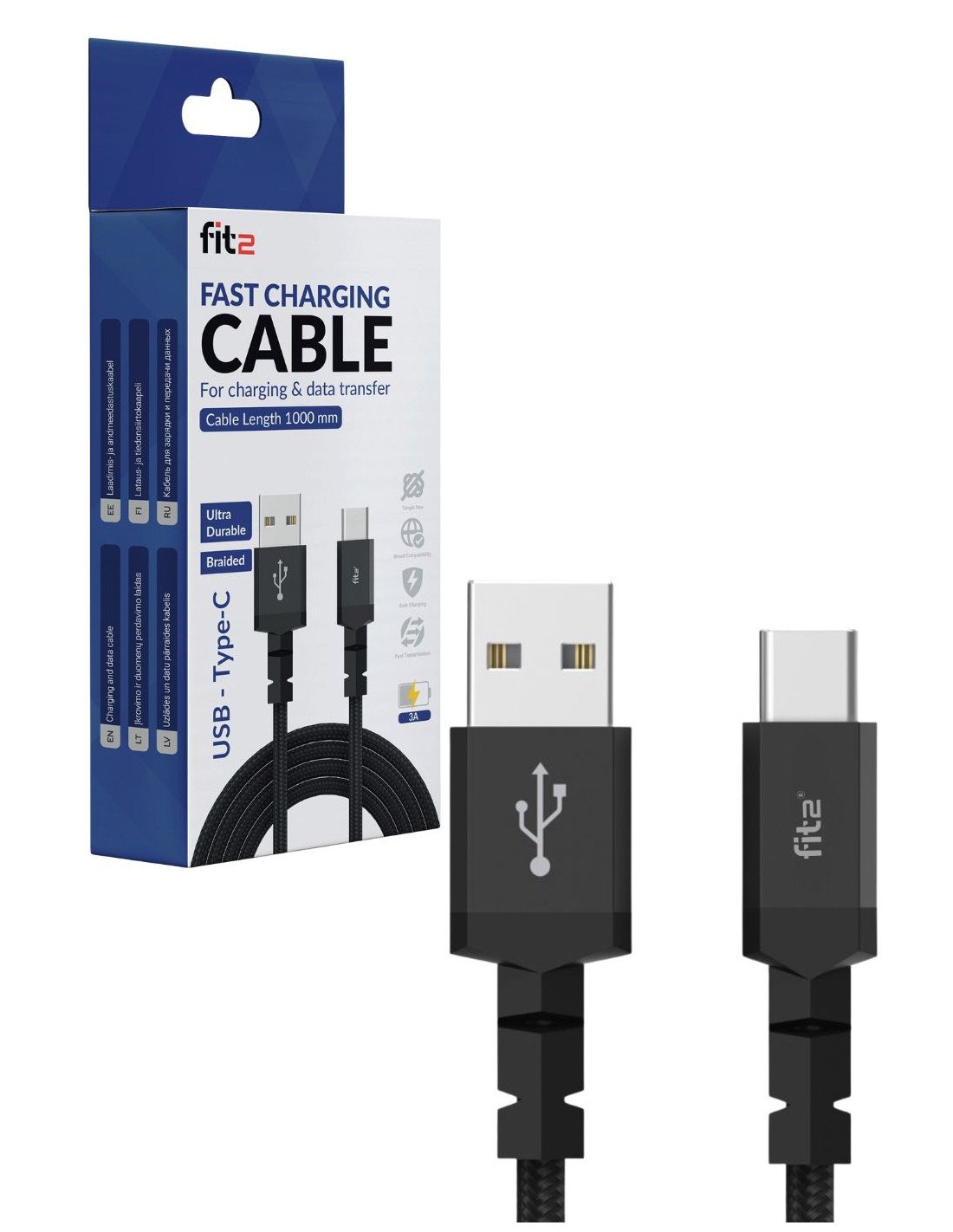 FIT2 USB-A to USB-C Fast Charging Cable – 1 m, Braided