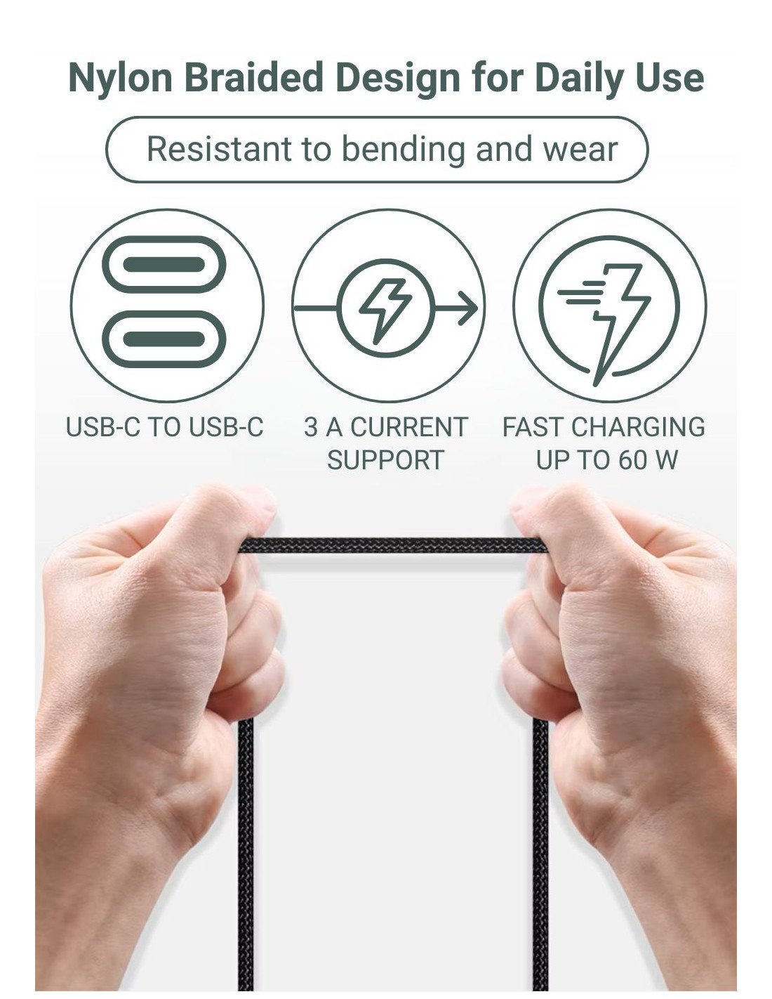 FIT2 USB-C to USB-C Fast Charging Cable – 60W, 1 m, Braided
