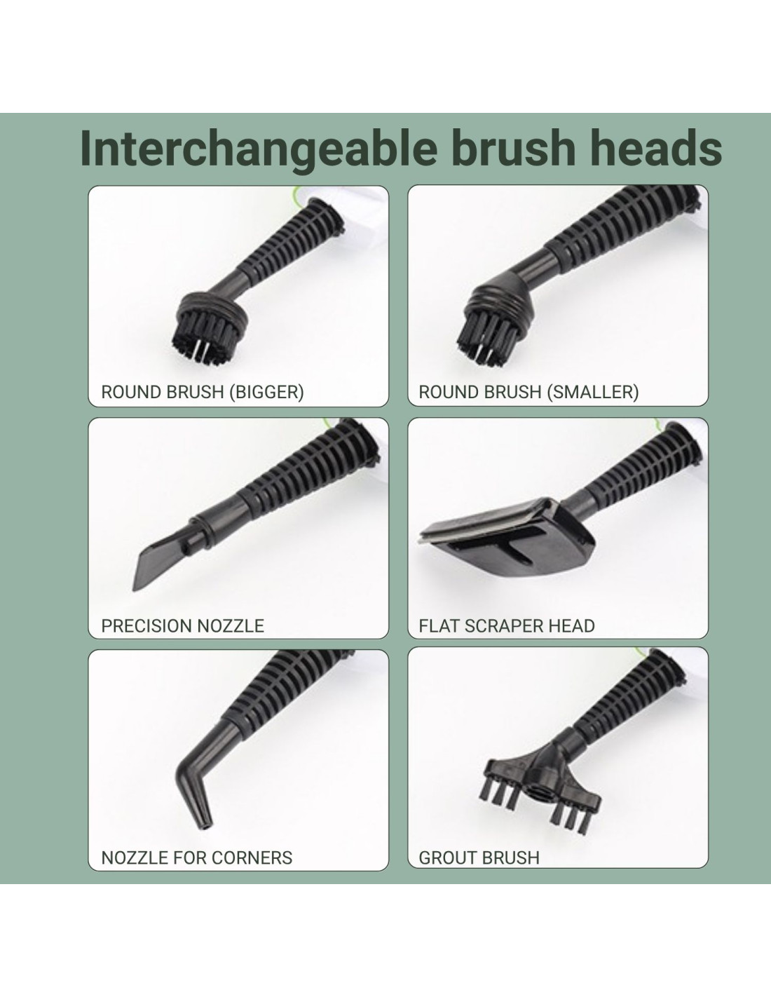 Multiple brush heads included – interchangeable nozzles and brushes for corners, tiles, grout, windows, and more.