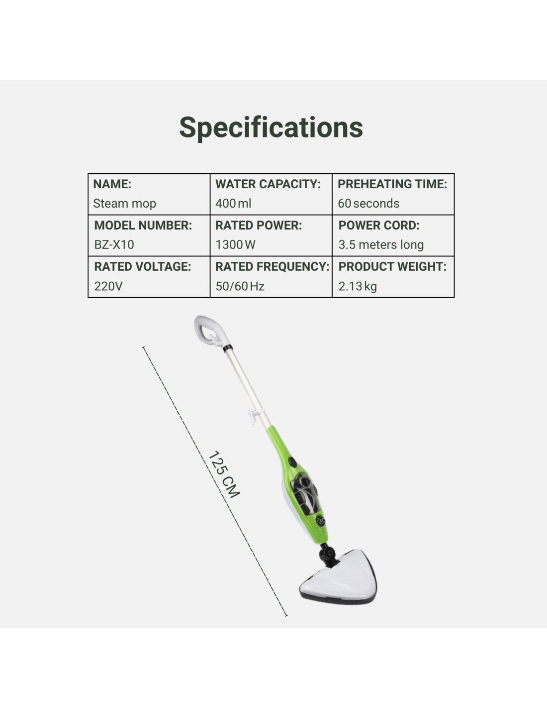 Discover a faster and healthier way to keep your home clean with this powerful steam mop. Hot steam (up to 130 °C) effectively kills germs, removes dirt, eliminates dust mites, and leaves floors spotless without streaks.