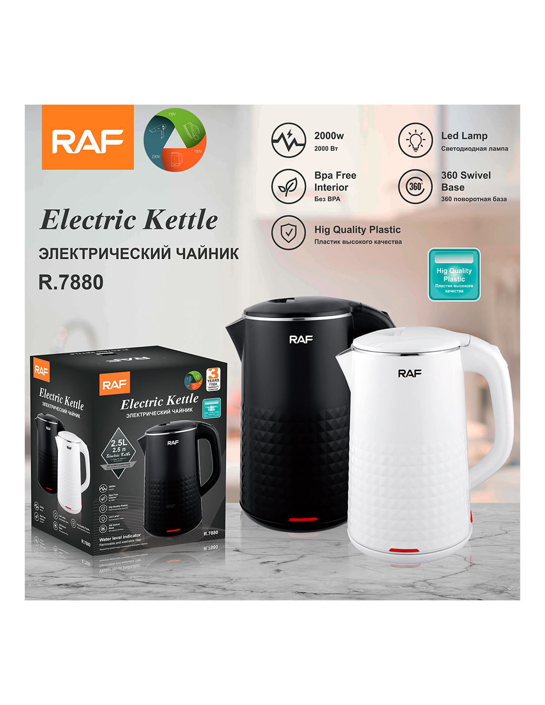 Bring speed, safety, and style to your kitchen with the RAF R.7880 Electric Kettle. Designed with a modern stainless-steel body and advanced safety features, this kettle combines performance and elegance for your daily tea, coffee, or meal preparation.
