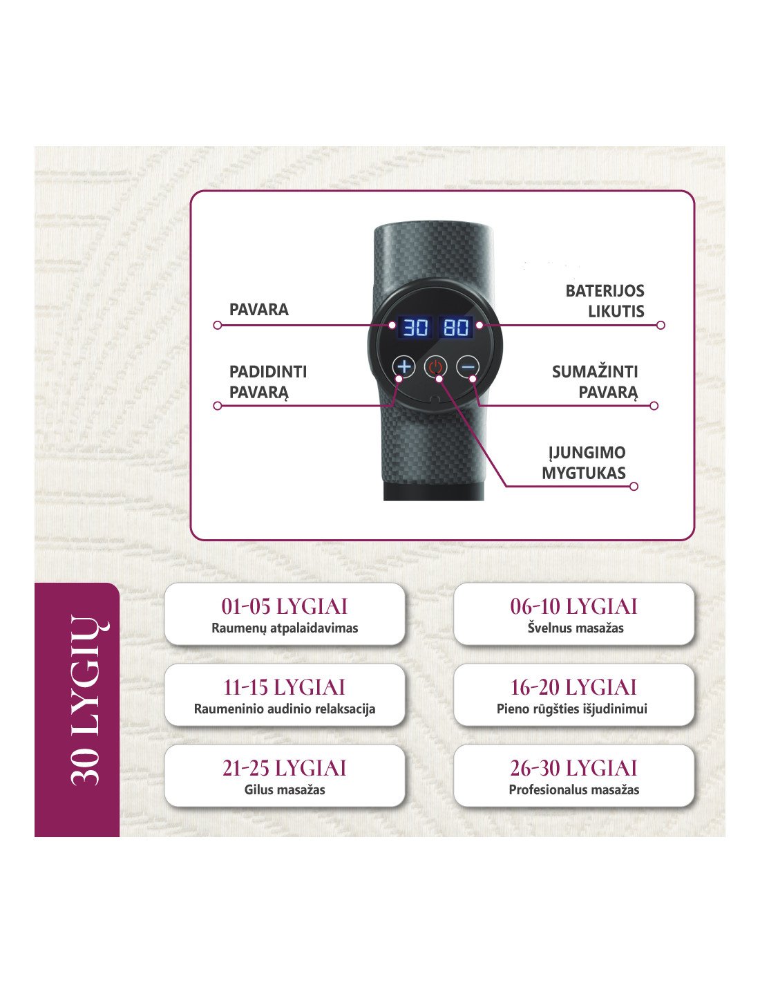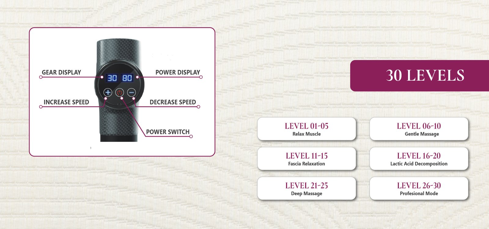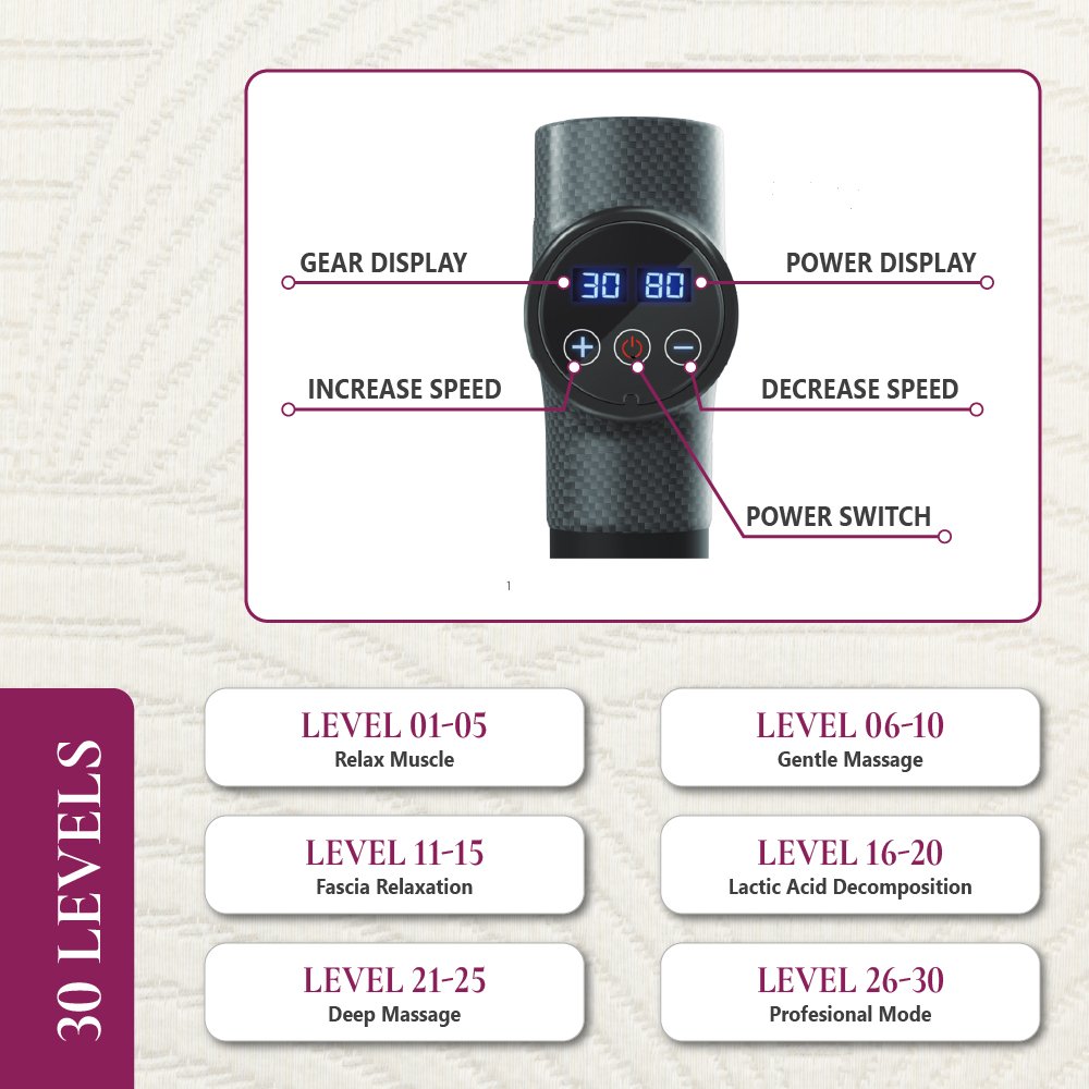 ULTRA-QUIET OPERATION. The innovative technology of this massage gun ensures silent operation, so you can enjoy your massage without any noise.