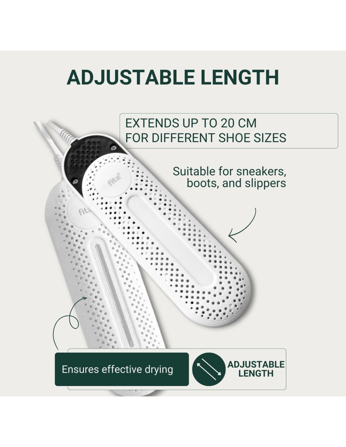The FIT2 W6 Shoe Dryer is a compact and energy-efficient solution for removing moisture from your footwear. Designed for safe indoor household use, it generates controlled heat to dry shoes gently while helping maintain freshness and comfort.