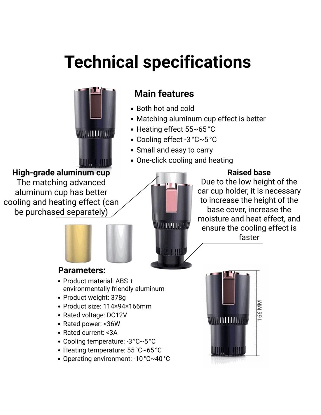Automobilinis puodelio laikiklis FIT2 su šildymo ir vėsinimo funkcija, 12V