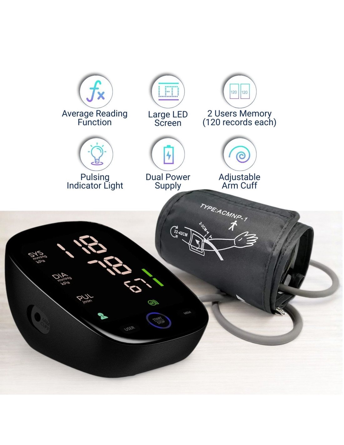 • Didelis LED ekranas: Aiškūs ir lengvai įskaitomi skaičiai, tinkami ir vyresnio amžiaus vartotojams.