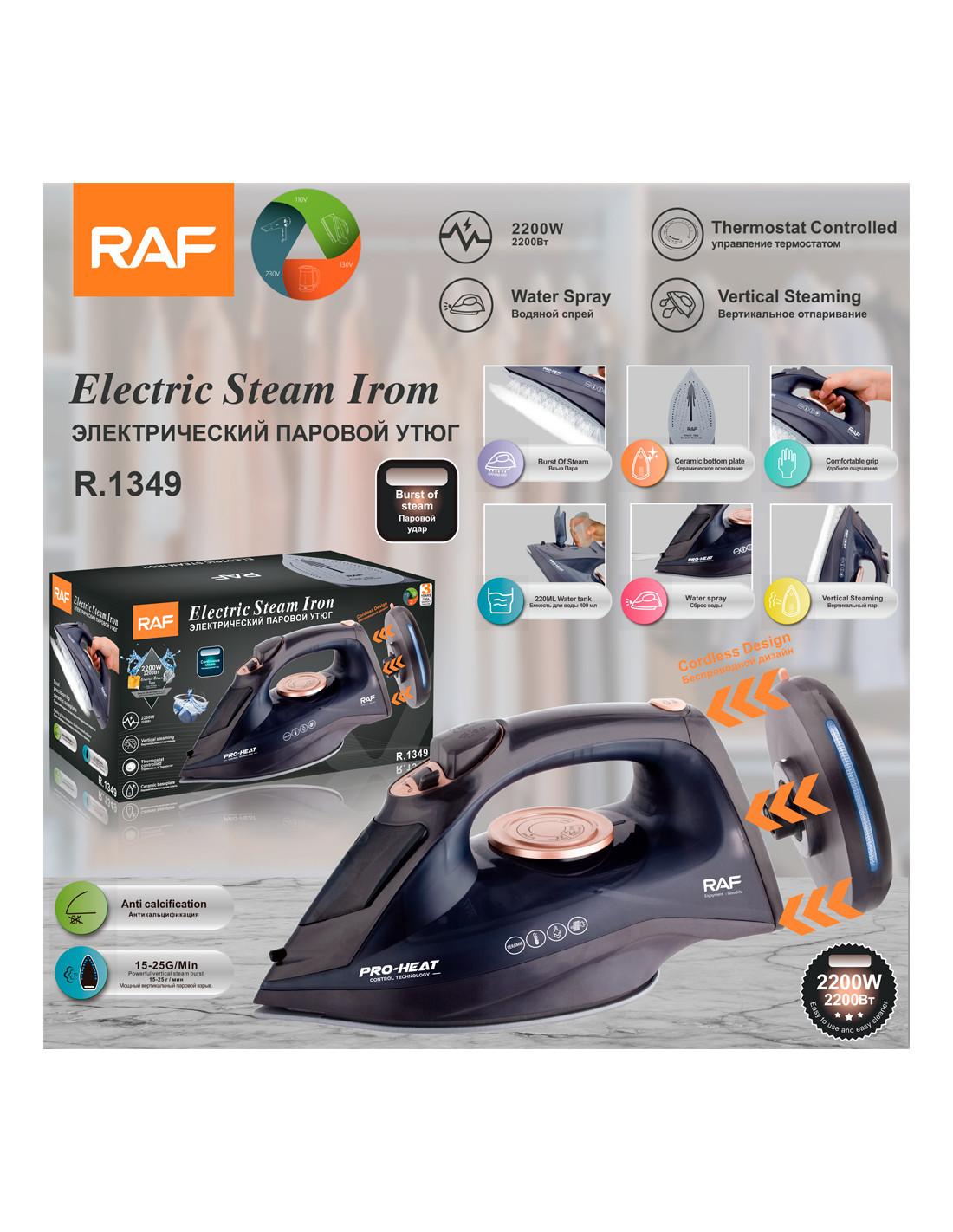Atraskite nepriekaištingo lyginimo patirtį su RAF R.1349 elektriniu gariniu lygintuvu, sukurtu tam, kad pasiektumėte profesionalius rezultatus savo namuose. Galingas garo srautas, nelipni pado danga ir reguliuojama temperatūra padeda lengvai išlyginti net sunkiausias raukšles – nuo švelnaus šilko iki tvirto džinso.