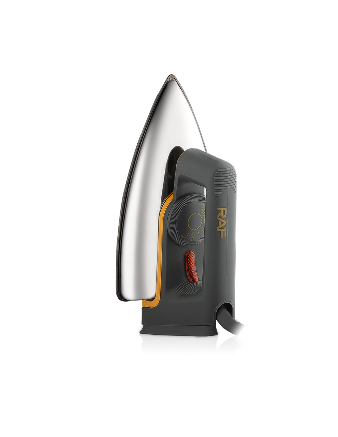 RAF R.1108 elektrinis sausas lygintuvas (1600 W, 220 V) – lengvas, su nelimpančiu padu, reguliuojama temperatūra, greitu įkaitimu ir apsauga nuo perkaitimo – sukurtas patogiam ir sklandžiam kasdieniam lyginimui.
