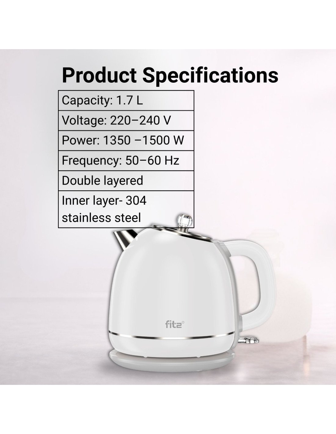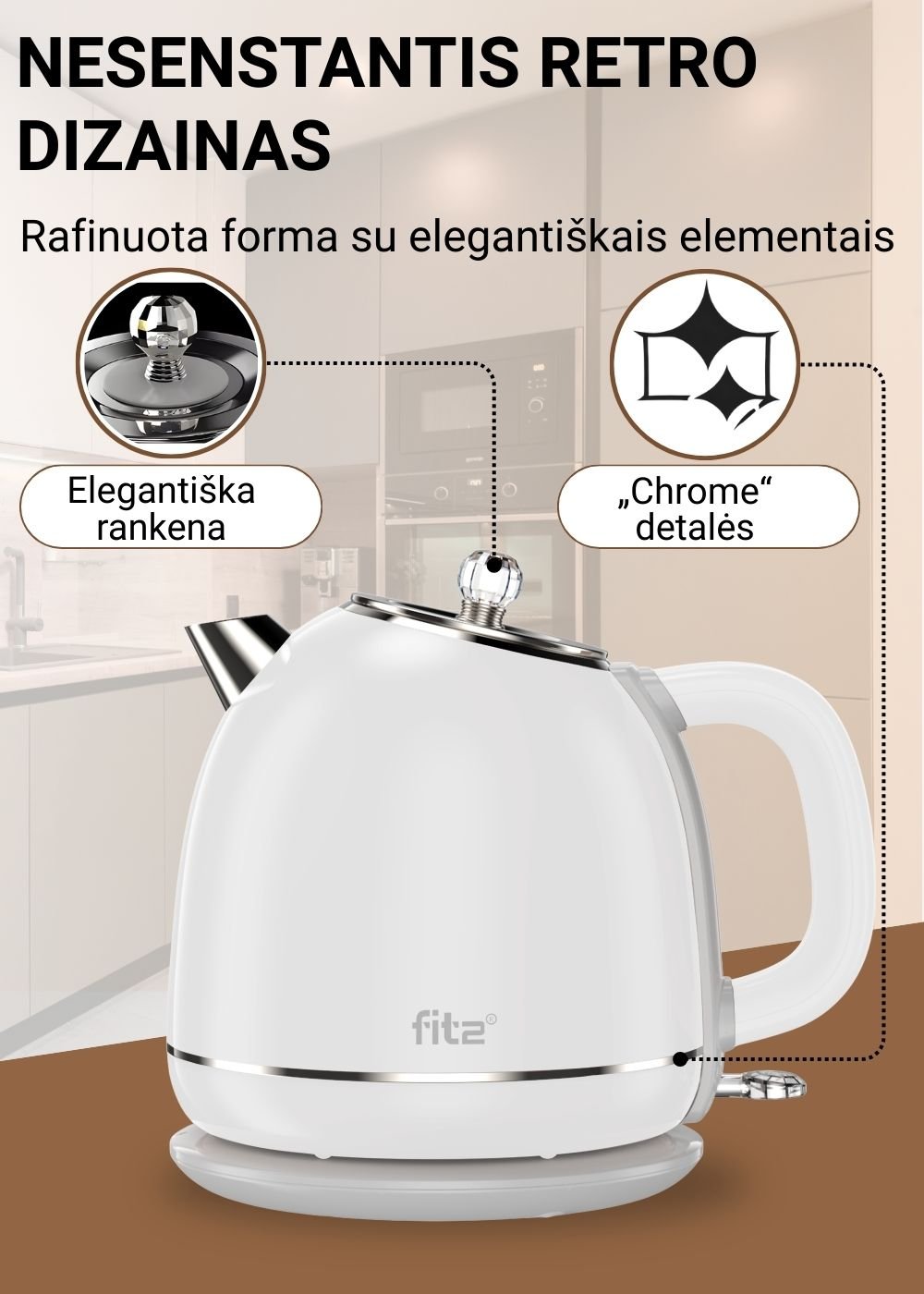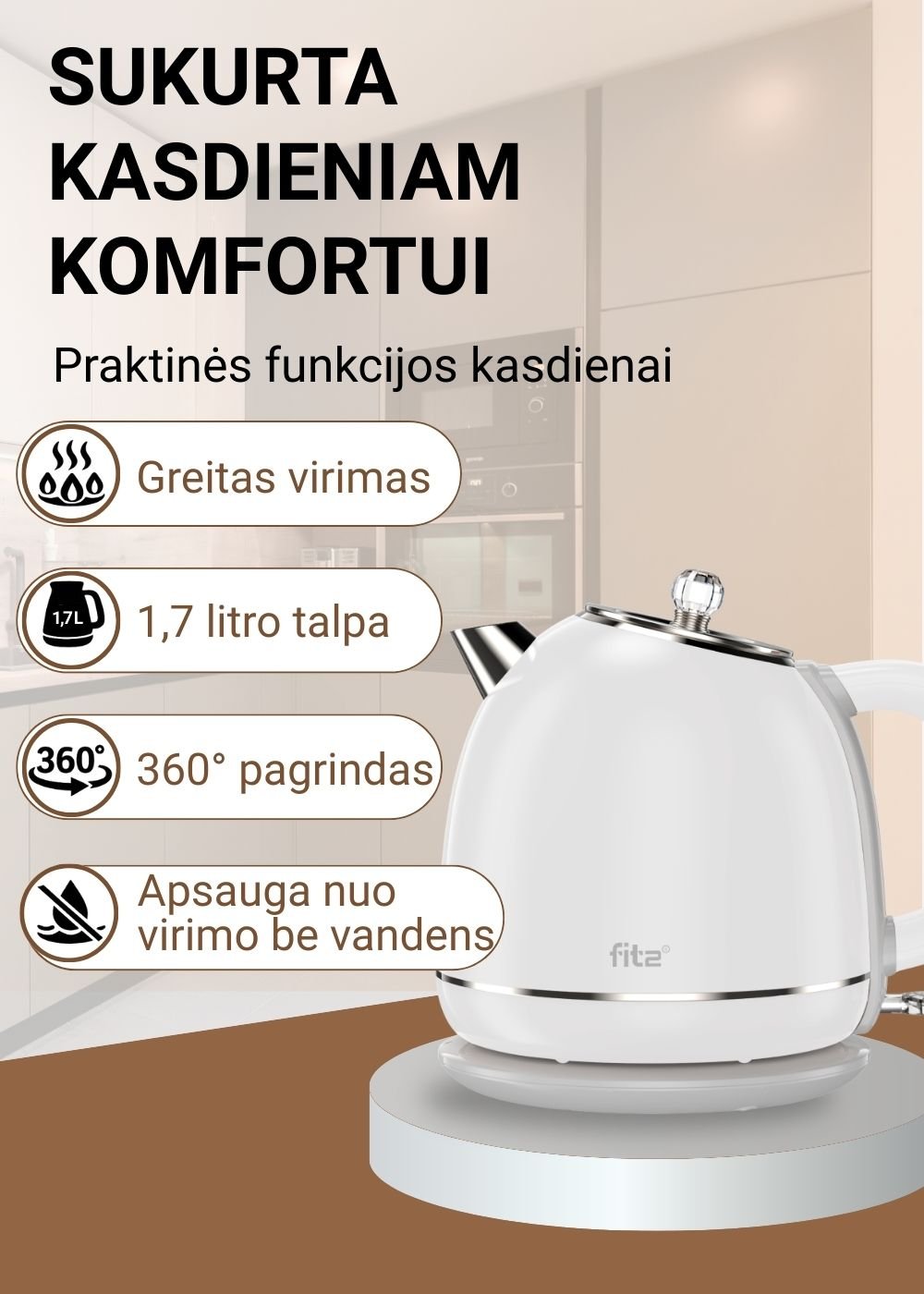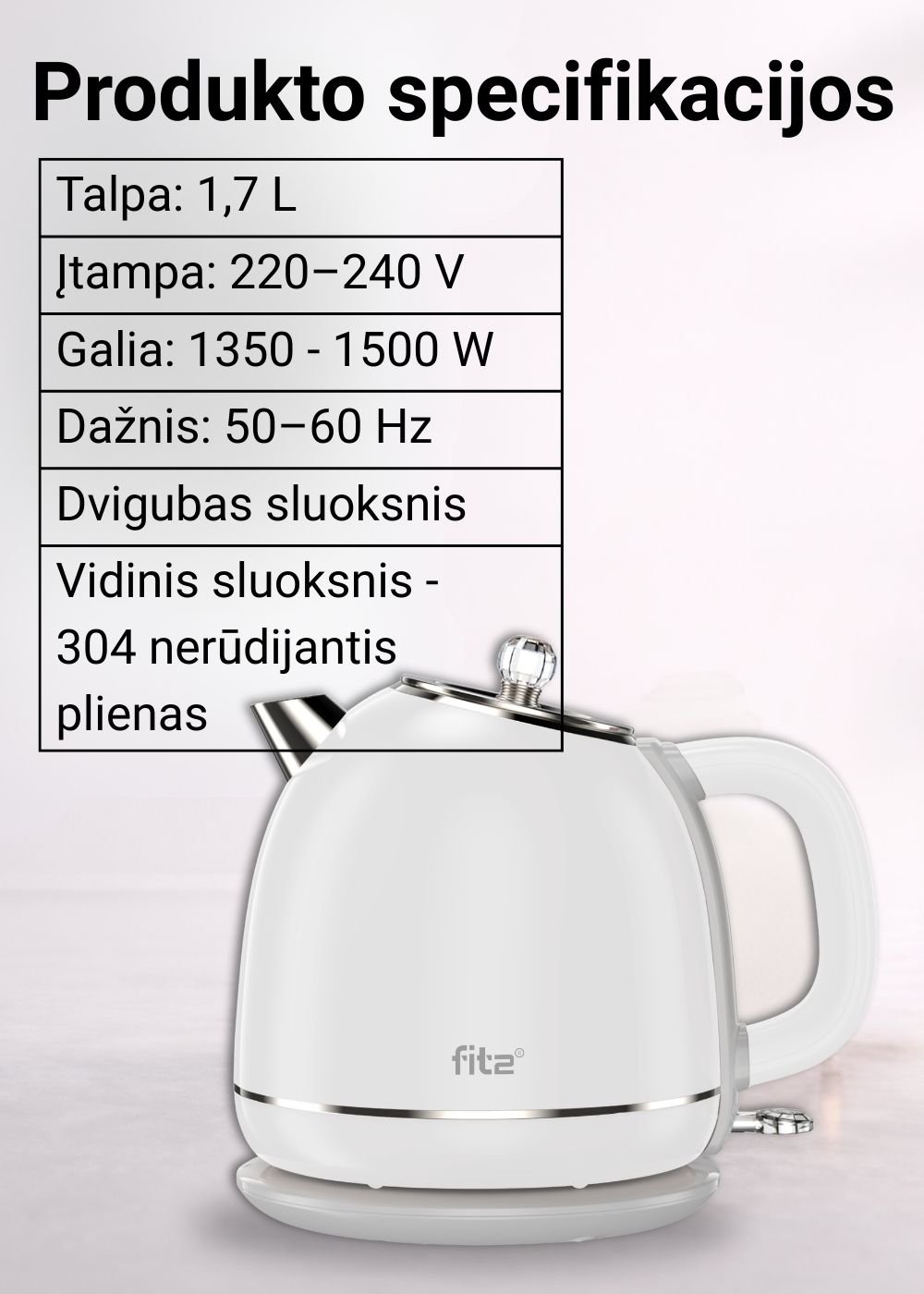 FIT2 elektrinis virdulys YD-1831, 1,7 l, 1500 W, baltas